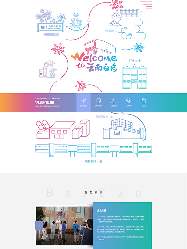 針對本次官網(wǎng)設計,除了介紹公司的基本情況外,更多的是展示產(chǎn)品和歷史傳承方面,以“新白藥、大健康”為核心注重強化其品牌概念以及公司優(yōu)勢,布局方面,采用了在國際化設計中較為流行的扁平化布局風(fēng)格,內容呈現上疏密有使整個(gè)頁(yè)面更簡(jiǎn)約、直觀(guān),卻不失內容和主題的完整。