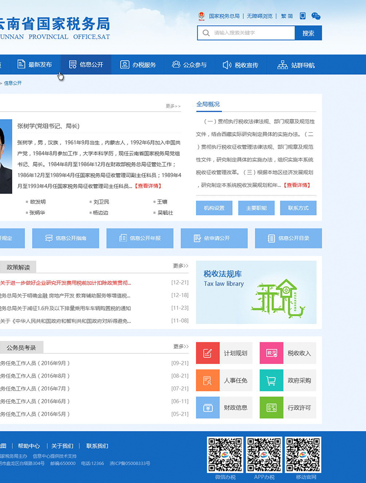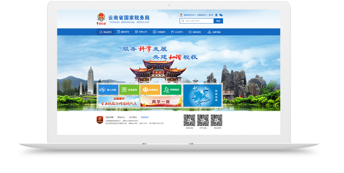 云南省國家稅務(wù)局成立于1994年,機構設置、干部管理、人員編制、經(jīng)費開(kāi)支由國家稅務(wù)總局垂直管理,屬于正廳(局)級國家機關(guān),省局機關(guān)下內設有25個(gè)處級機構(辦公室、人事處、教育處、監察室、巡視工作辦公室、機關(guān)黨委辦公室、機關(guān)工會(huì )、離退休干部處、貨物和勞務(wù)稅處、所得稅處、征管和科技發(fā)展處、納稅服務(wù)處、收入規劃核算處、財務(wù)管理處、督察內審處、政策法規處、大企業(yè)和國際稅務(wù)管理處、稽查局、信息中心、機關(guān)服務(wù)中心、稅收科學(xué)研究所、注冊稅務(wù)師管理中心、稅務(wù)學(xué)會(huì )、云南省稅務(wù)干部學(xué)校、《中國稅務(wù)報》社駐云南記者站),下設16個(gè)州、市國家稅務(wù)局,137個(gè)縣、市、區國家稅務(wù)局和215個(gè)稅務(wù)分局。